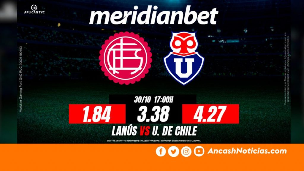 Los pronósticos del fútbol internacional en Meridianbet dan como favorito a Lanús pagando su triunfo con la cuota de 1.84. La victoria de la U. de Chile paga 4.27 mientras que el empate paga 3.38.