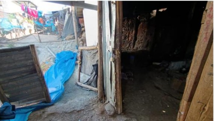 El hecho ocurrió a las 10:42 a. m., cuando el desprendimiento de tierra impactó contra una casa de material rústico, dejando a dos personas damnificadas.