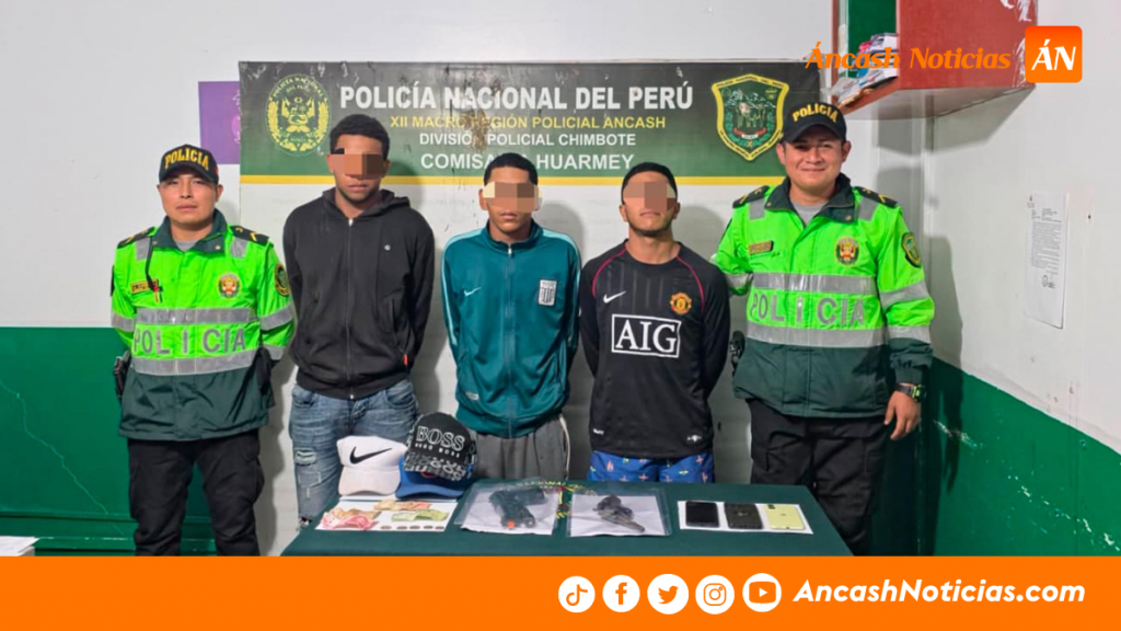 Un megaoperativo policial en Huarmey permitió la detención de tres personas investigadas por el delito de extorsión, según informó la Región Policial Áncash.