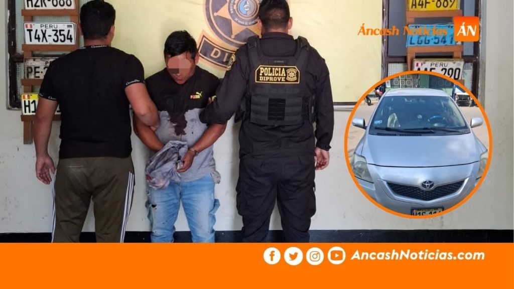 Un sujeto identificado con las iniciales M.A.H.L. (33) fue detenido por agentes de la Unidad de Prevención e Investigación de Robo de Vehículos de Chimbote, cuando se encontraba junto a un automóvil que había sido reportado como robado horas antes.