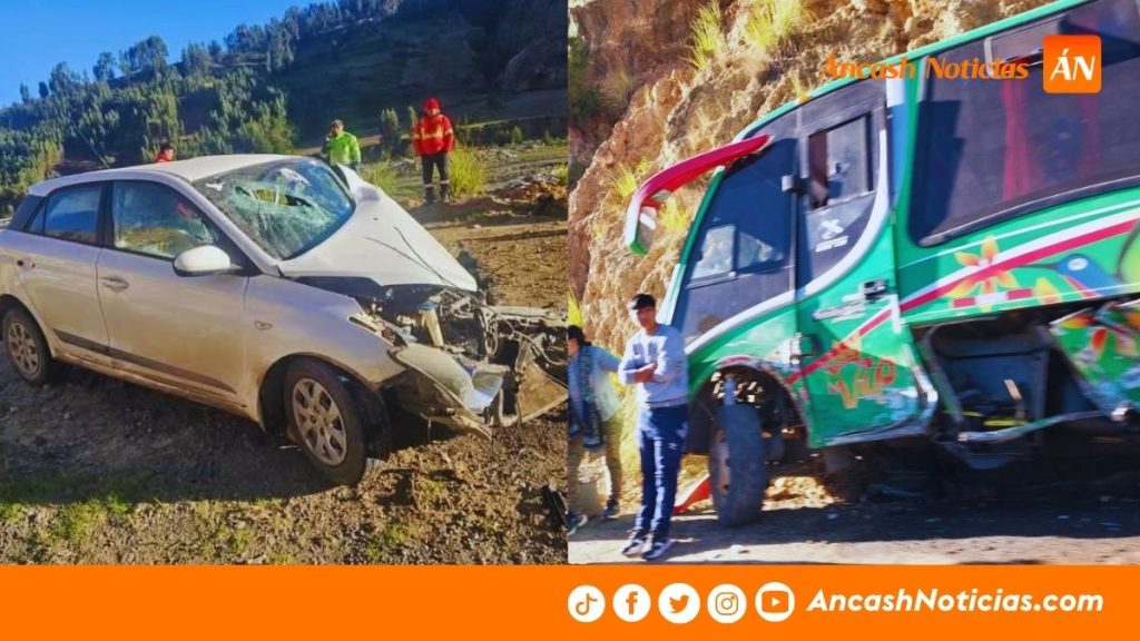 El choque involucró a un minibús que se dirigía hacia la zona de Los Conchucos y a un automóvil blanco que tenía como destino la ciudad de Huaraz.
