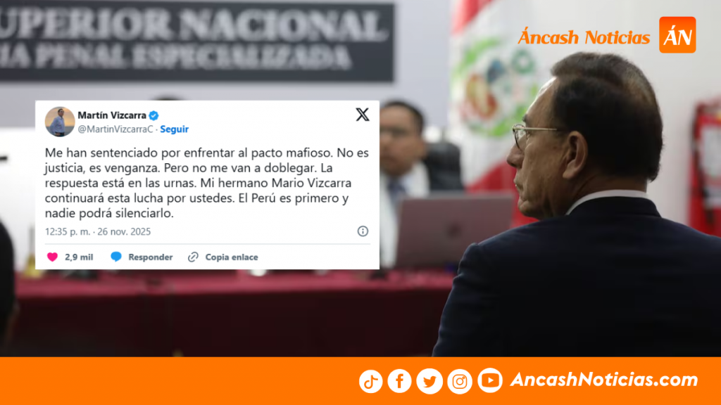 Luego de que el Cuarto Juzgado Penal Colegiado Nacional dictara 14 años de prisión en su contra, Martín Vizcarra utilizó su cuenta de X para expresar su postura frente al fallo. El exmandatario afirmó que la sentencia responde —según su perspectiva— a una “venganza” y a un “pacto mafioso”.