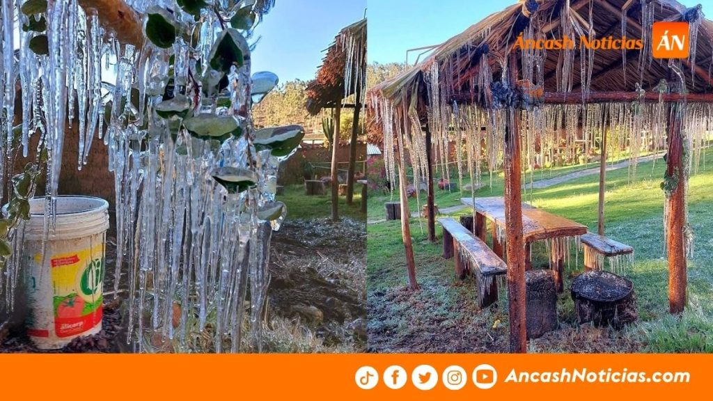 El distrito de Corongo atraviesa un panorama preocupante; heladas extremas que han congelado durante la madrugada los sistemas de riego, dejando canales y aspersores completamente solidificados. Al amanecer, los campos agrícolas permanecían cubiertos por capas de hielo, afectando el normal desarrollo de cultivos y generando alarma entre agricultores y ganaderos.
