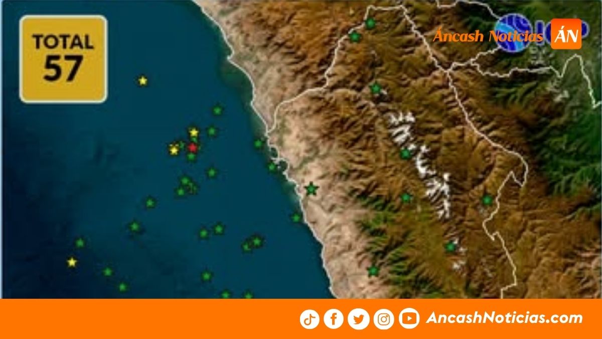 El Centro de Operaciones de Emergencia Regional (COER) Áncash informó que, hasta el 28 de diciembre de 2025, se han registrado y sentido 57 sismos en el departamento de Áncash, reflejando una constante actividad sísmica en la región durante el presente año.