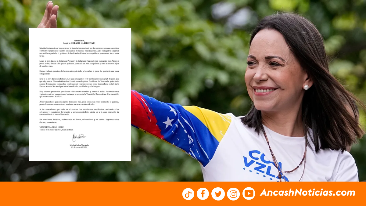 En el pronunciamiento, fechado el 3 de enero de 2026, Machado sostiene que Nicolás Maduro enfrenta desde ahora a la justicia internacional por los crímenes cometidos contra los venezolanos y ciudadanos de otras naciones, tras rechazar una salida negociada a la crisis política.