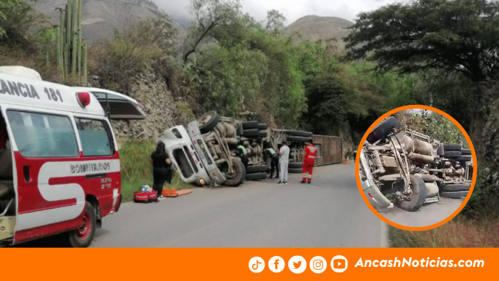 Un accidente de tránsito se registró en la ruta que conecta Caraz con Huaraz, a la altura del sector conocido como cruce Huamán, donde un tráiler se despistó y terminó fuera de la vía.