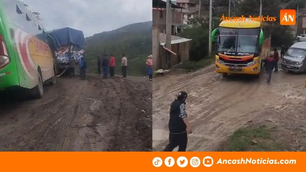 Uno de los casos más recientes se registró en el sector Ashnucancha, donde un bus de la empresa Chavín Express, con pasajeros a bordo, quedó atrapado en la cuneta, evidenciando la gravedad de la situación y el deficiente mantenimiento de la carretera.