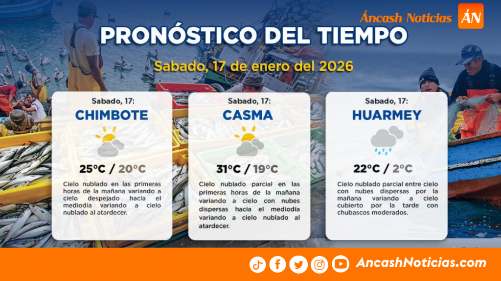 El pronóstico del tiempo para este sábado 17 de enero de 2026 prevé condiciones climáticas variables en distintas provincias de la región Áncash, de acuerdo con la información proporcionada por el Servicio Nacional de Meteorología e Hidrología (Senamhi).