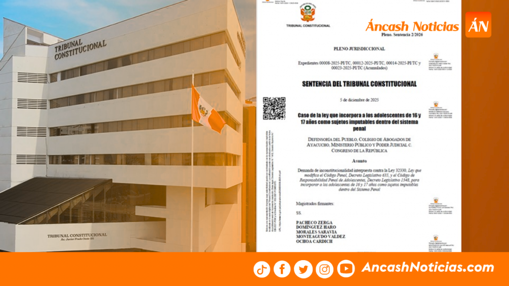 El Tribunal Constitucional declaró inconstitucional la Ley N.° 32330, norma que permitía que adolescentes de 16 y 17 años sean juzgados en el sistema penal ordinario, como si fueran adultos.