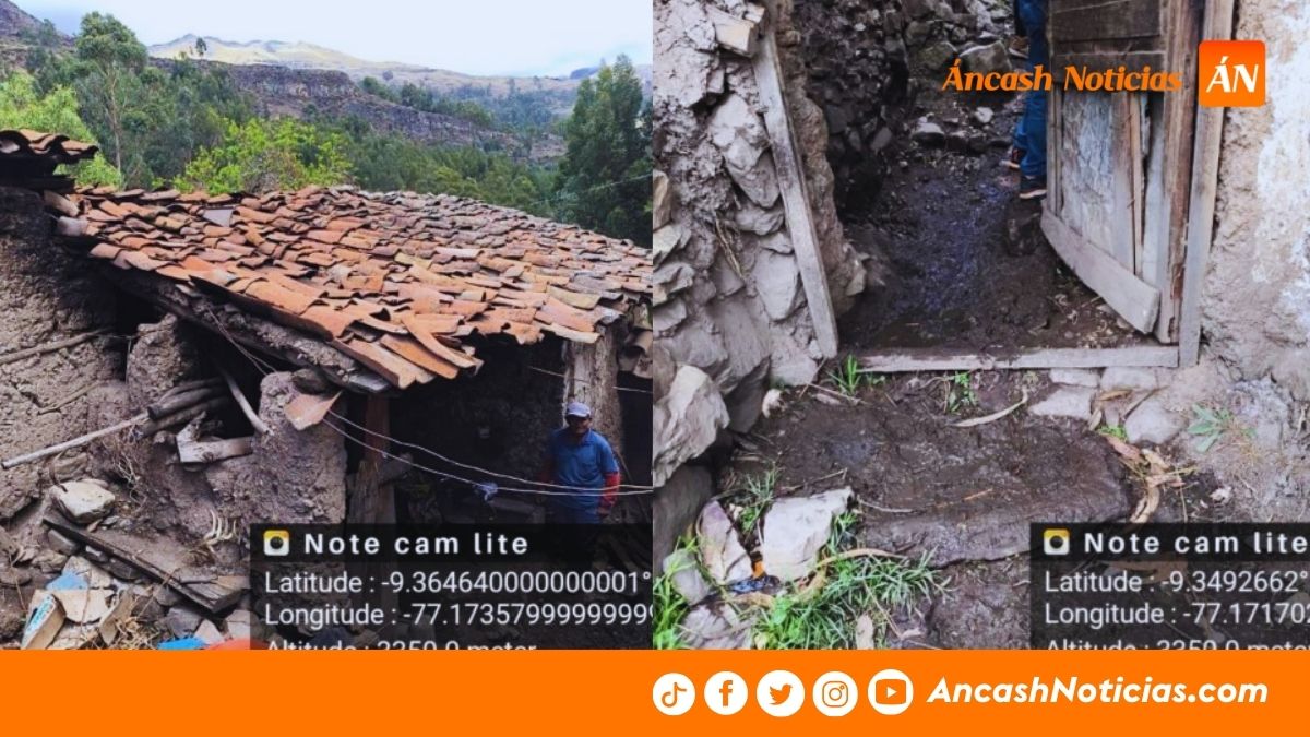 Las lluvias intensas registradas la madrugada del lunes 19 de enero, alrededor de las 5:00 a. m., provocaron daños materiales en viviendas de la localidad de Cushin, en el distrito y provincia de Huari, según informó el Centro de Operaciones de Emergencia Regional (COER) Áncash.