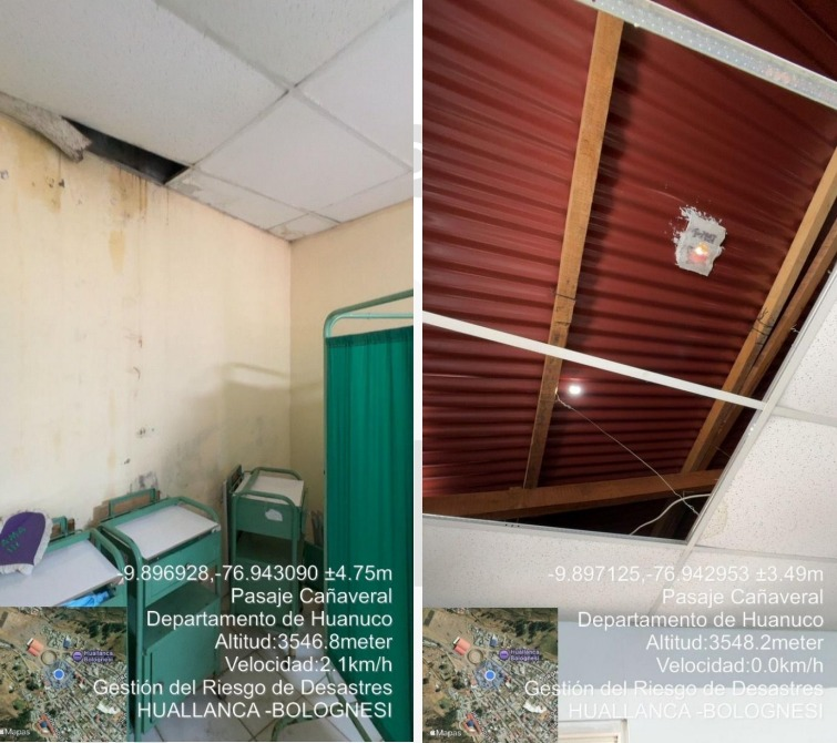 Las lluvias intensas registradas la mañana del lunes 27 de enero ocasionaron filtraciones en la cobertura del techo y paredes del Centro de Salud Huallanca, ubicado en el distrito de Huallanca, provincia de Bolognesi, según informó el Centro de Operaciones de Emergencia Regional (COER) Áncash.