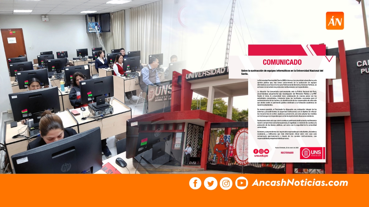 Un nuevo hecho delictivo vuelve a golpear a la Universidad Nacional del Santa (UNS). Esta vez, el robo afectó a la Escuela Profesional de Derecho y Ciencias Políticas, donde fueron sustraídos equipos informáticos valorizados en más de 102 mil soles, según consta en la denuncia policial.
