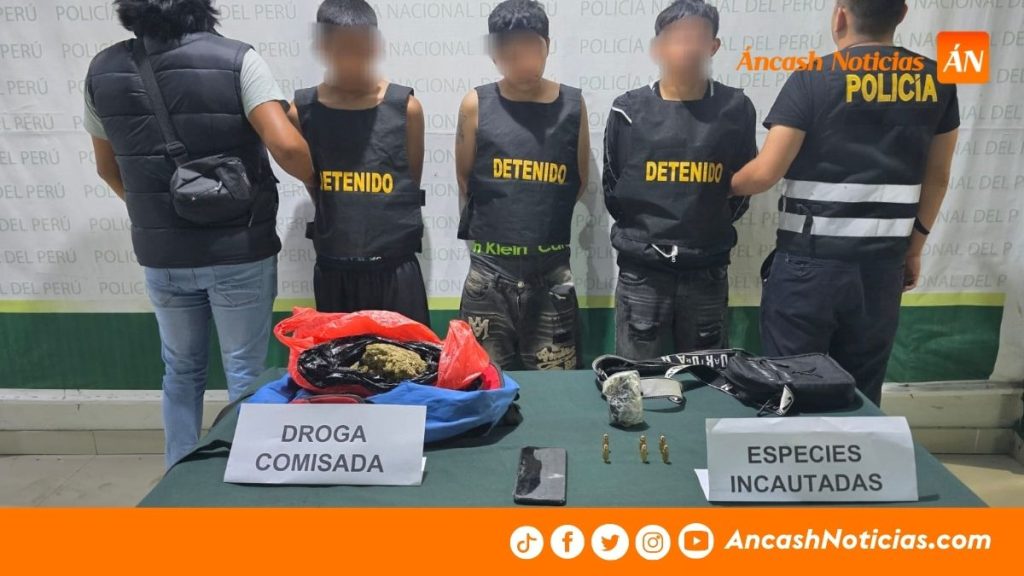 Efectivos de la Región Policial Áncash, a través de la DEPINCRI Chimbote, intervinieron y detuvieron a tres personas por la presunta comisión de delitos contra la seguridad pública y contra la salud pública, durante un operativo realizado la madrugada del 29 de enero, a la 1:05 a. m., en el asentamiento humano Ricardo Palma s/n, en la ciudad de Chimbote.