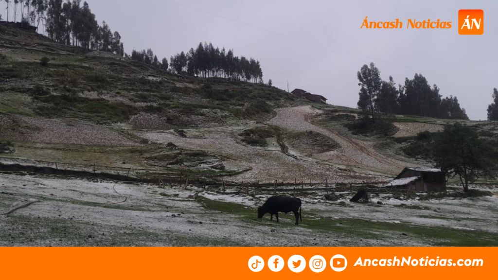 Una fuerte granizada se registró la tarde de hoy en el centro poblado de Conopa, en la provincia de Pomabamba, causando graves daños en la actividad agrícola local. El fenómeno climático se presentó con inusual intensidad durante varios minutos, cubriendo extensas áreas de cultivo con granizo.