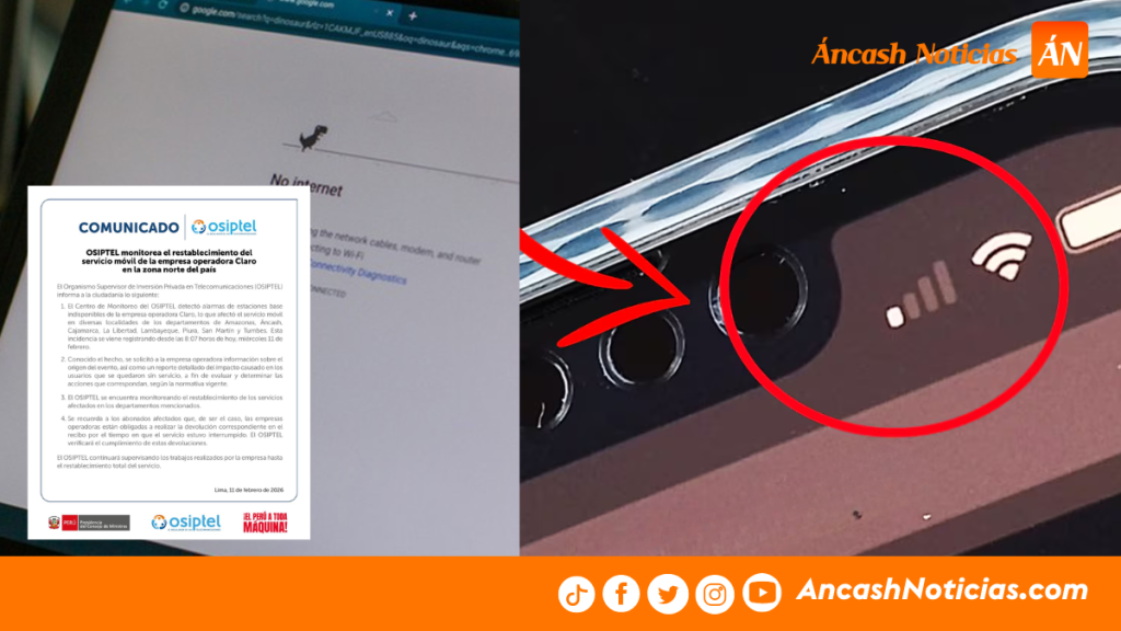 El Organismo Supervisor de Inversión Privada en Telecomunicaciones (OSIPTEL) informó que viene monitoreando el restablecimiento del servicio móvil de la empresa operadora Claro tras detectarse interrupciones en diversas localidades del norte del país, incluyendo la región Áncash.