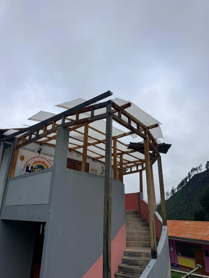 Precipitaciones y fuertes vientos afectaron el techo de la I.E. N.° 86691 Inés Schreiber, generando filtraciones en aulas y pasadizos.