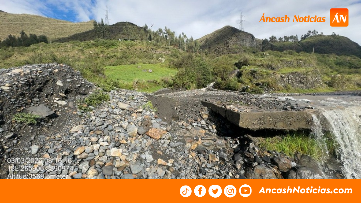 Huaylas: huaico interrumpe vía vecinal en Huallanca y deja tránsito bloqueado