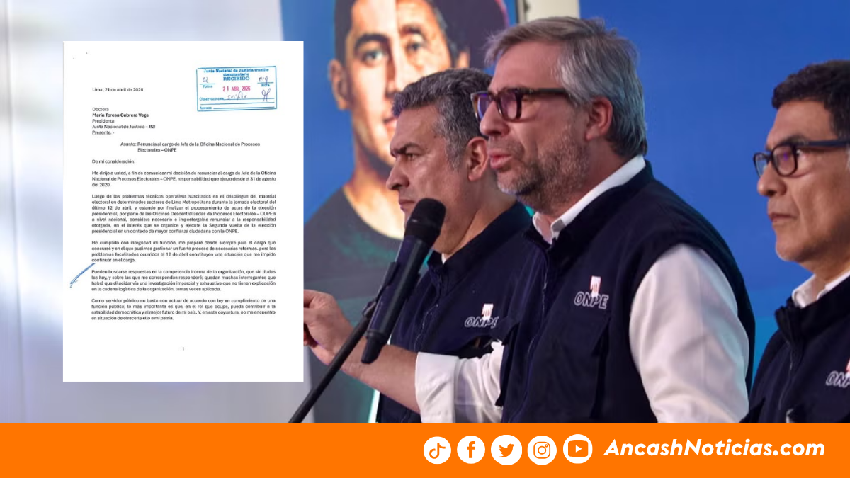 En el documento, el ahora exfuncionario señaló que su decisión se da tras los problemas técnico-operativos registrados durante el despliegue de material electoral en algunos sectores de Lima Metropolitana en la jornada del 12 de abril.
