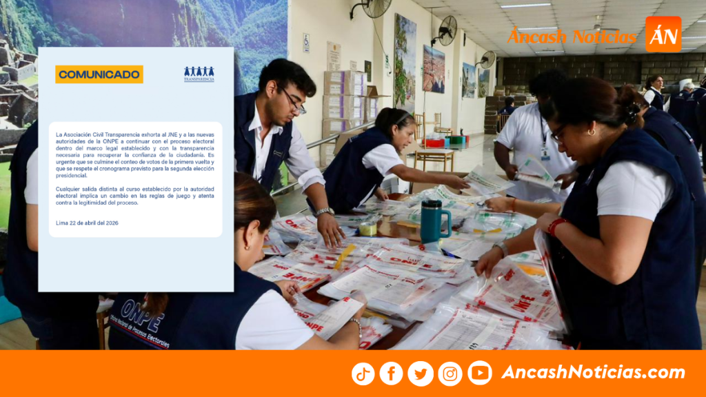 La Asociación Civil Transparencia emitió un pronunciamiento en el que advierte sobre la importancia de no alterar las reglas del proceso electoral en curso, en el marco de las Elecciones 2026.