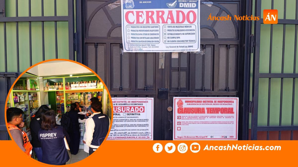 En un operativo inopinado realizado este miércoles 22 de abril, autoridades intervinieron dos boticas ubicadas en el sector de Shancayán, en el distrito de Independencia, las cuales funcionaban sin licencia ni documentación, por lo que se dispuso su clausura temporal al representar un riesgo para la salud pública.