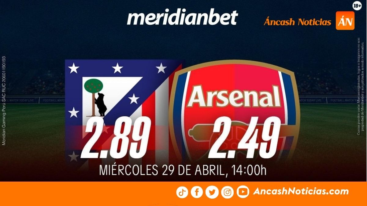 Regístrate en Meridianbet con el código 2800 y juega en el Atletico Madrid vs Arsenal por el juego de ida de las semifinales de la Champions League 2025-26. Además, al depositar desde S/100 mediante Kashio, participas por uno de los dos paquetes todo incluido a la final en Budapest.