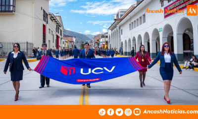 UCV Huaraz realizó su desfile institucional por el 34.º aniversario de la Universidad César Vallejo