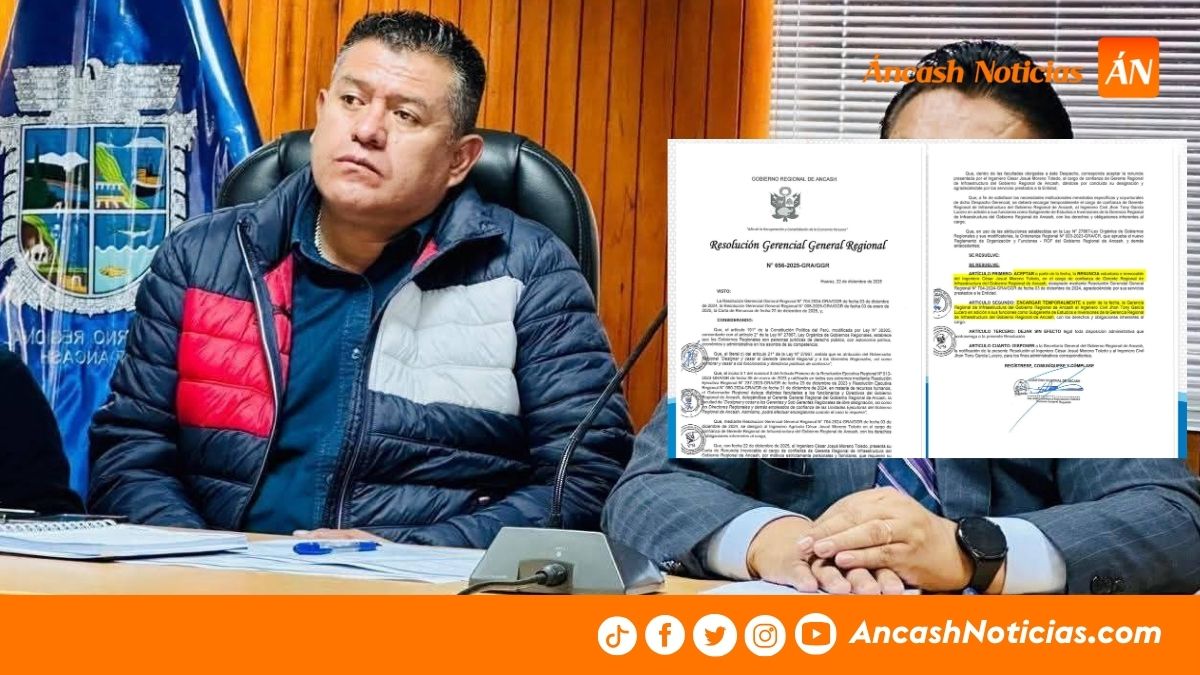 Áncash: Gobierno Regional acepta la renuncia del Gerente de Infraestructura