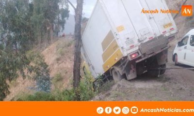noviembre 29, 2025 - 11:39 amUn camión frigorífico quedó al borde de un abismo en Conchucos; un árbol y transportistas evitaron la caída. No hubo heridos, pero el incidente alerta sobre los riesgos en la vía.