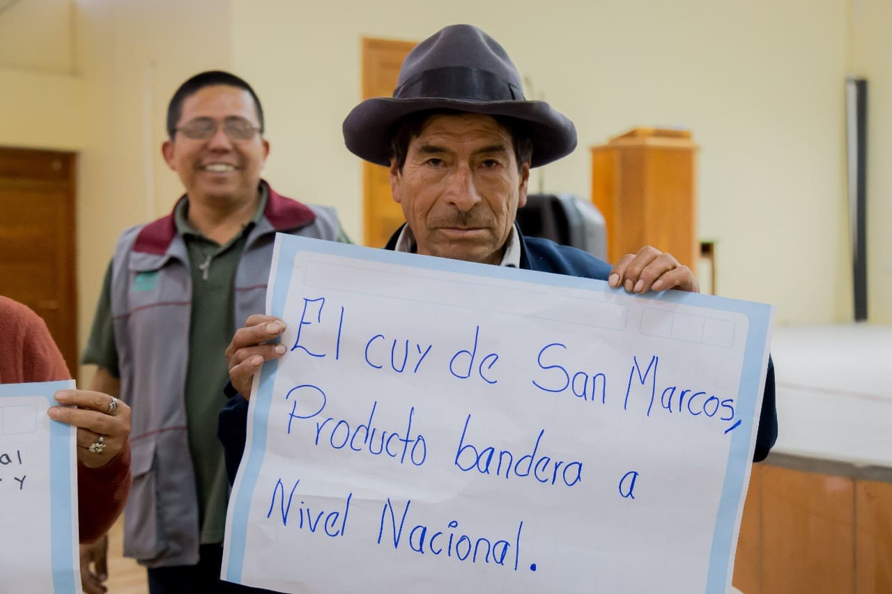 El Primer Encuentro de Productores de Cuyes de San Marcos se realiza como parte de las actividades programadas del Proyecto “Desarrollo territorial del distrito de San Marcos, a través del fortalecimiento de la Cadena Productiva de Cuyes”, que tiene por objetivo el desarrollo territorial mediante la formación de una marca colectiva de cuyes y su comercialización. Este proyecto viene siendo implementado técnicamente por los especialistas pecuarios de Caritas Huari con el financiamiento de la Compañía Minera Antamina.