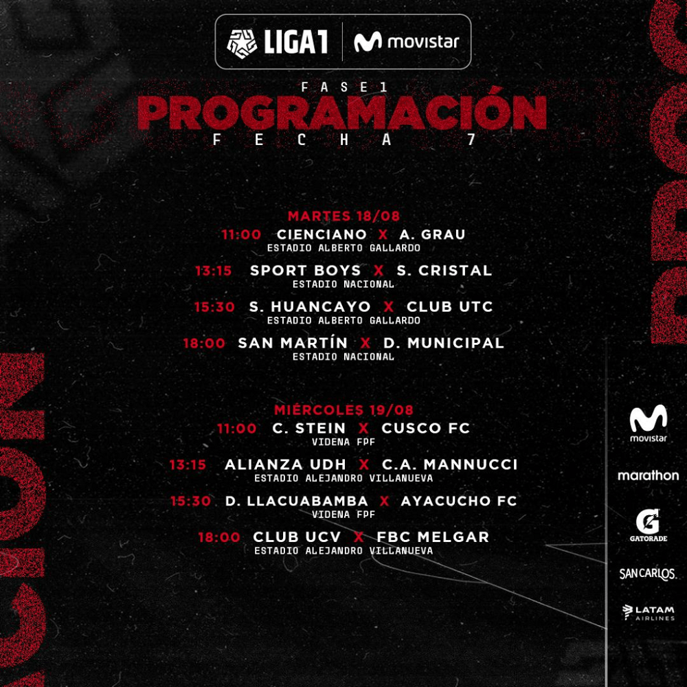 Tras la autorización del gobierno peruano para la vuelta de la Liga 1, la Federación Peruana de Fútbol hizo oficial la programación de la jornada 7 de los ocho partidos del Torneo Apertura 2020.